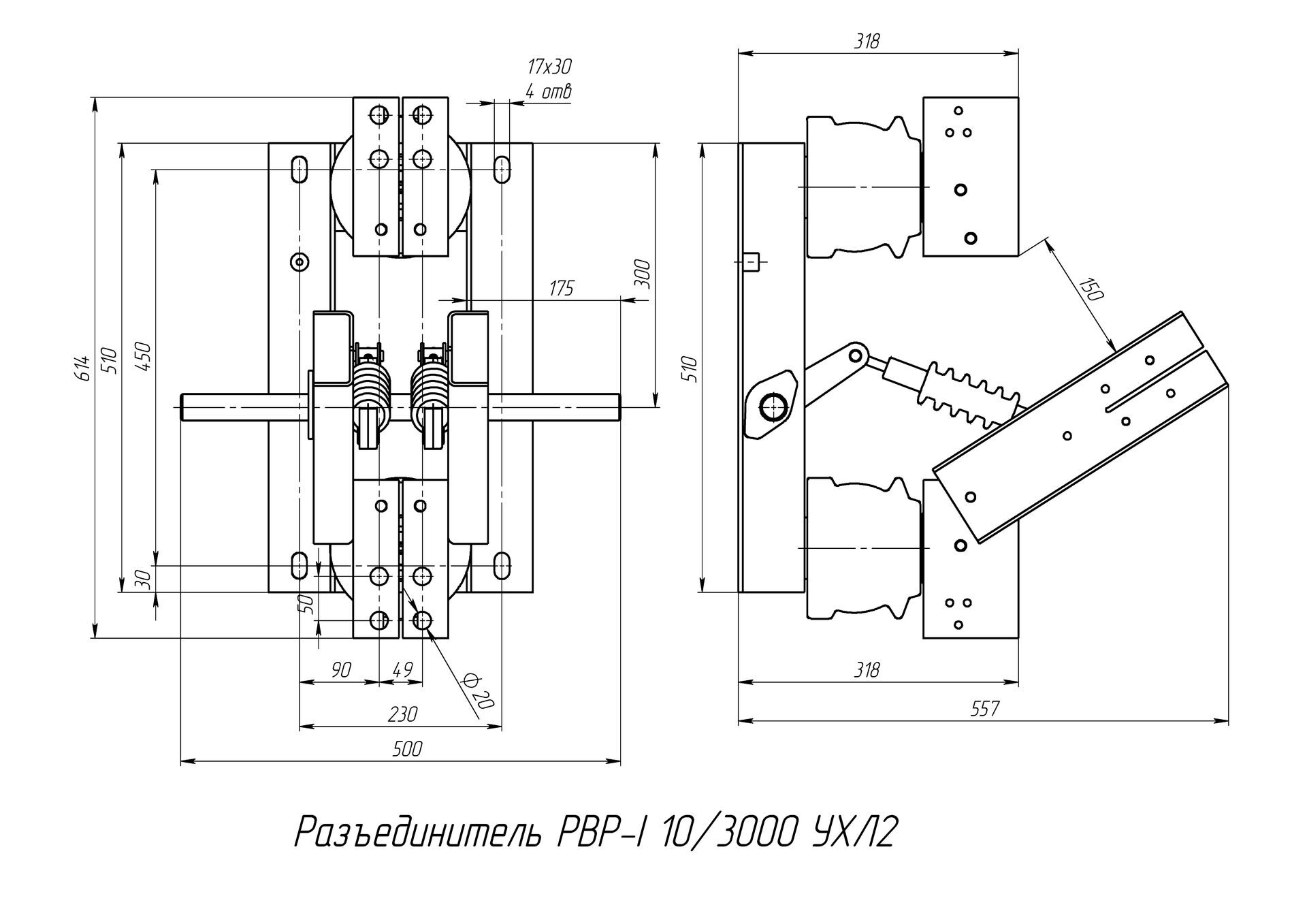 Разъединитель – электрический аппарат с видимым местом разъединения электрической цепи в воздухе, предназначен для включения и отключения под напряжением участков электрической цепи высокого напряжения при отсутствии нагрузочного тока.