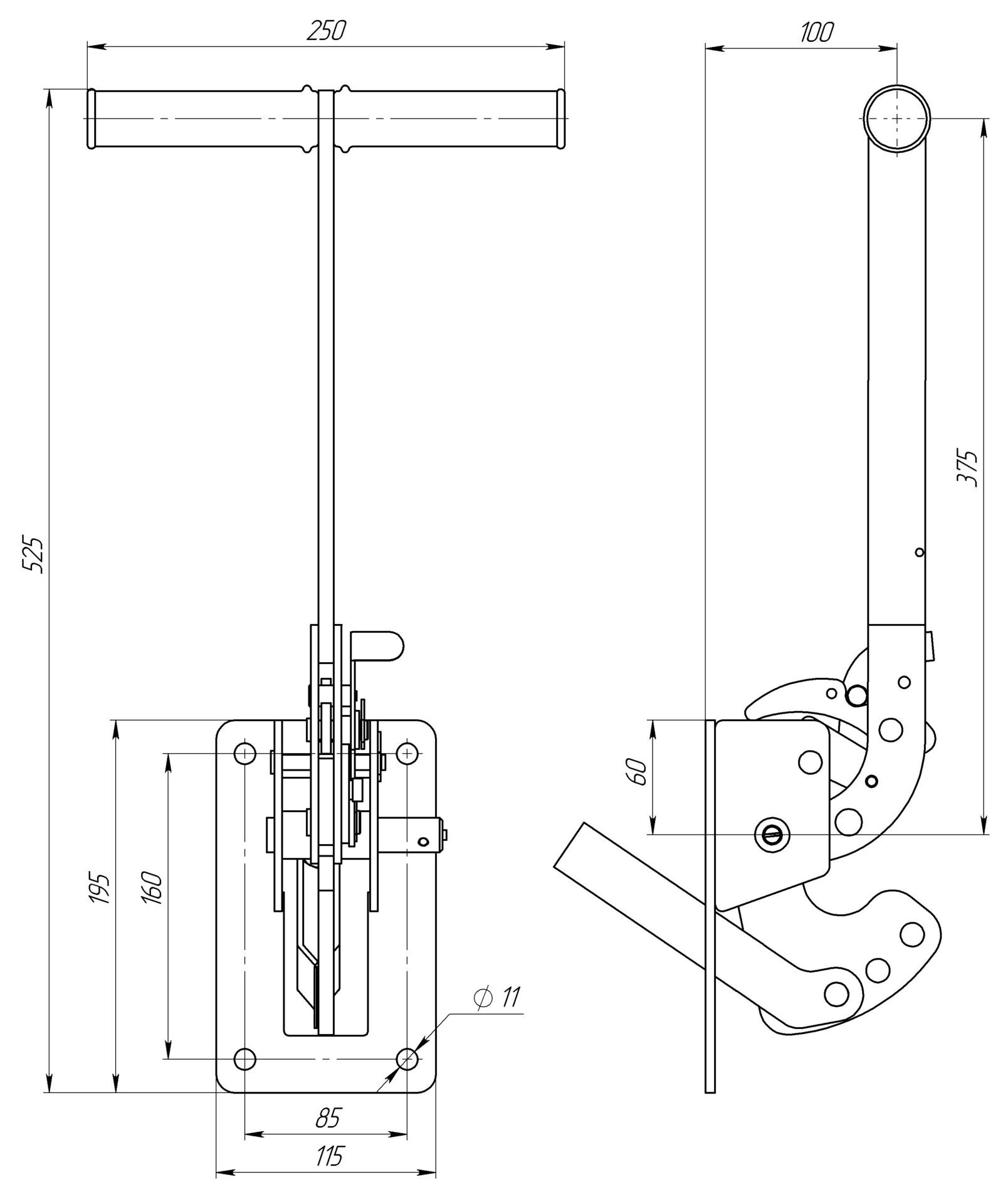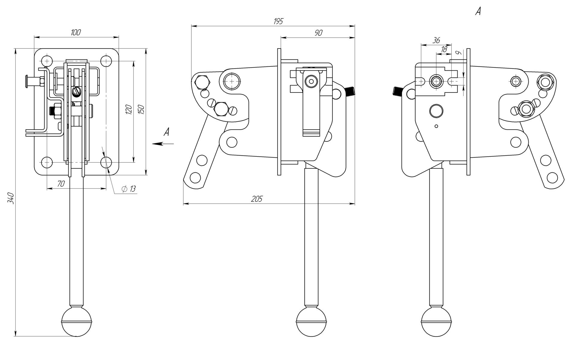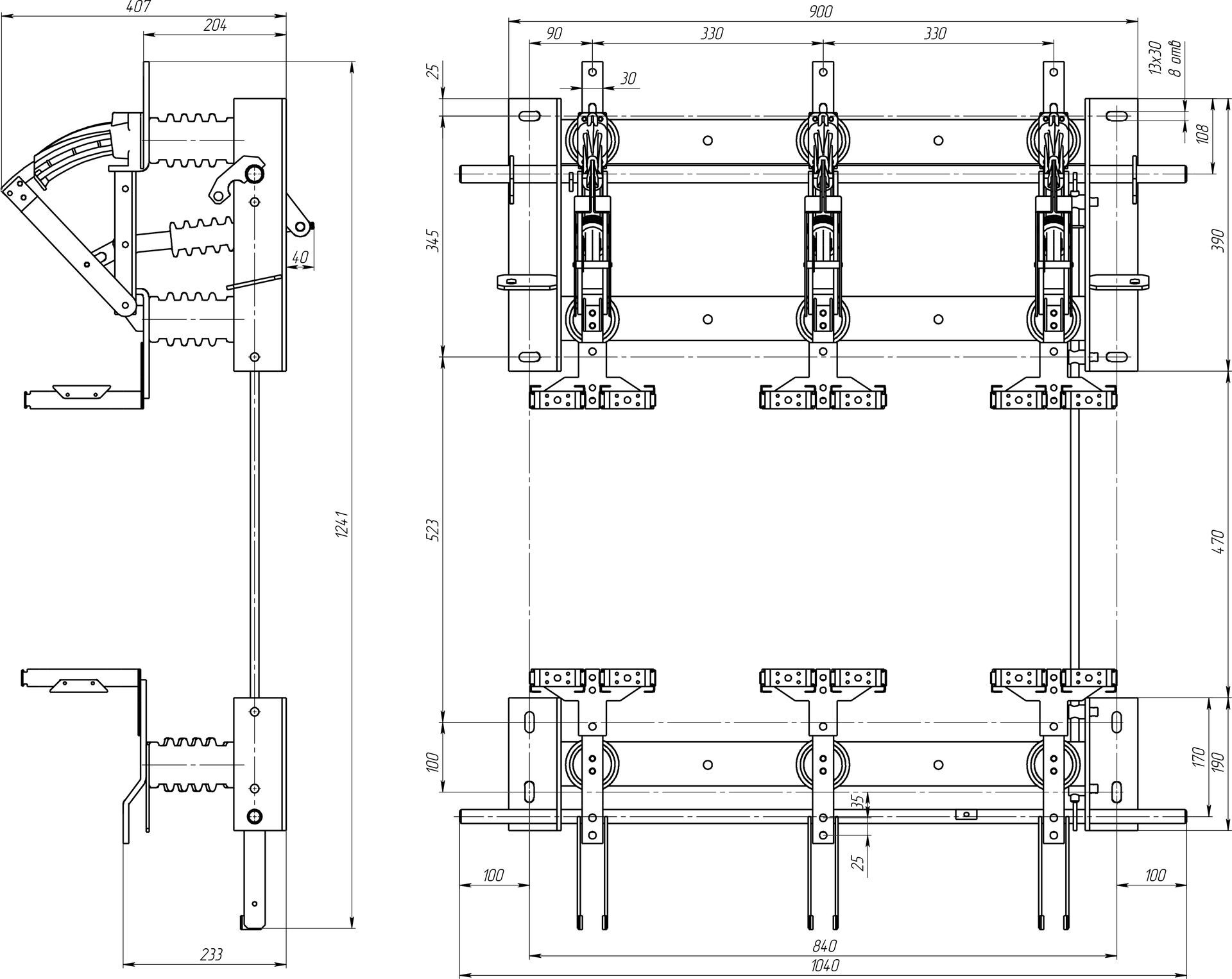 Для уверенной работы привода необходимо чтобы ось вала выключателя находилась выше оси вращения секторов привода на 50-100 мм.